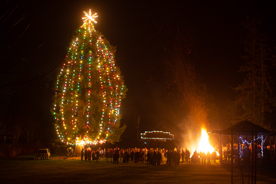 Christmas tree and fire on Christmas Eve
